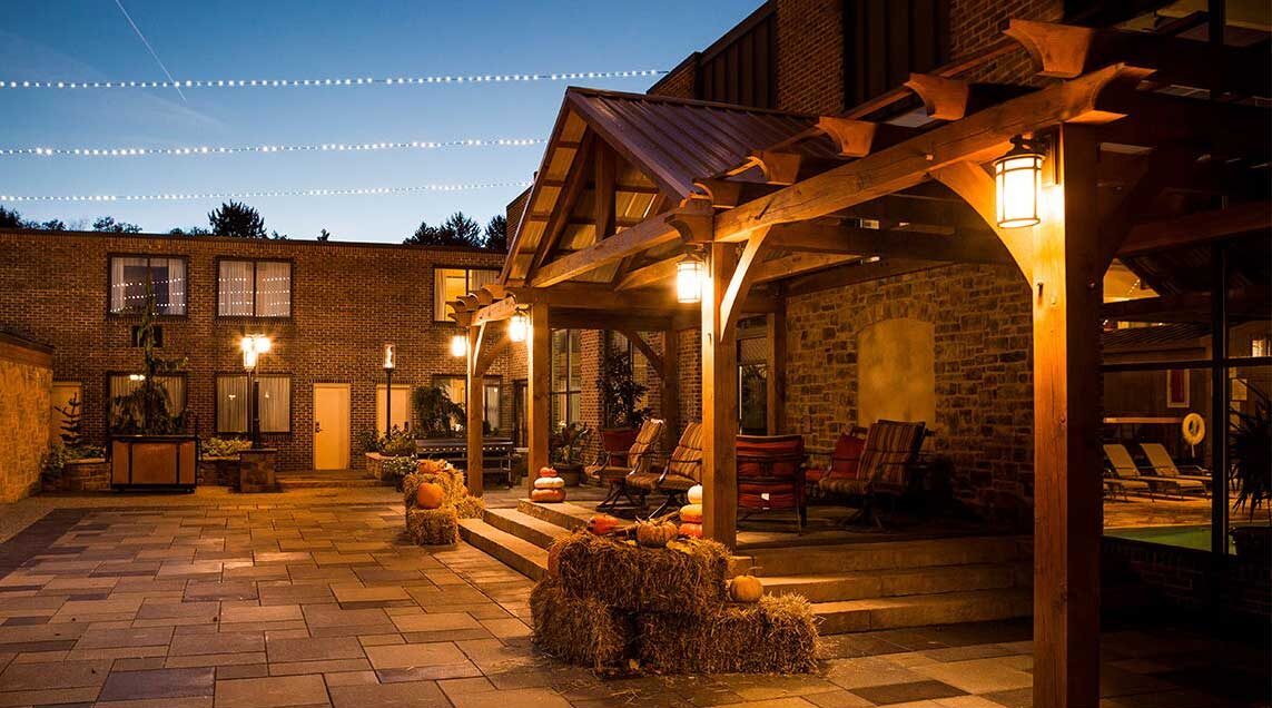 - NEW Outdoor Courtyard featuring a fireplace and fire pit. For a truly inspiring, relaxing experience, be sure to make time to indulge in our courtyard. Settle back and just breathe in the clean York County breezes as you stay warm thanks to our fireplace and fire pit.